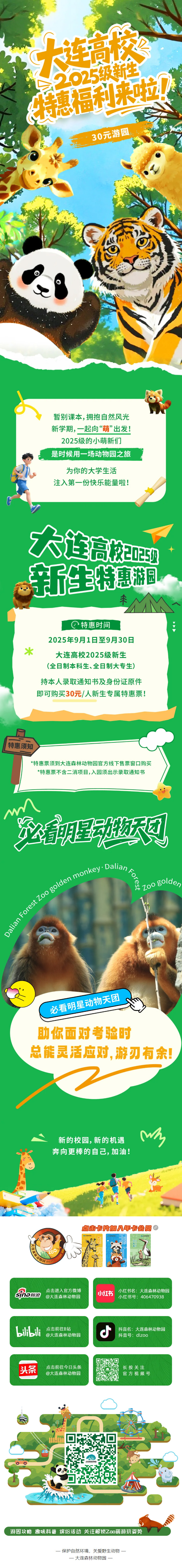 30元游動物園丨大連高校2025級新生特惠福利來啦!