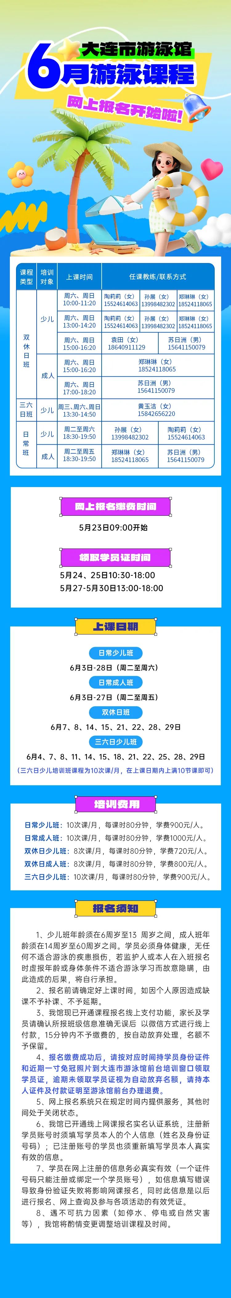 大連市游泳館六月游泳課程網(wǎng)上報名開始啦!