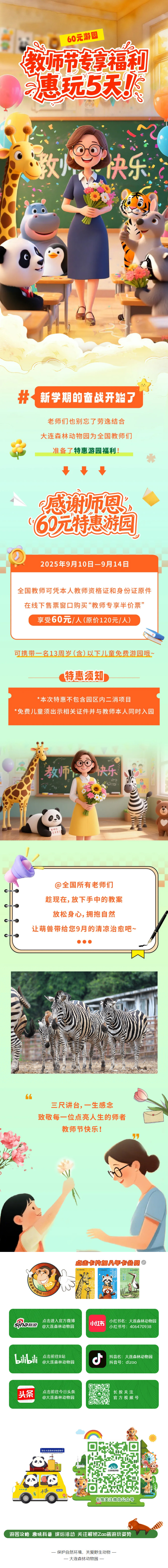 60元游動物園丨教師節(jié)專享福利,惠玩5天!