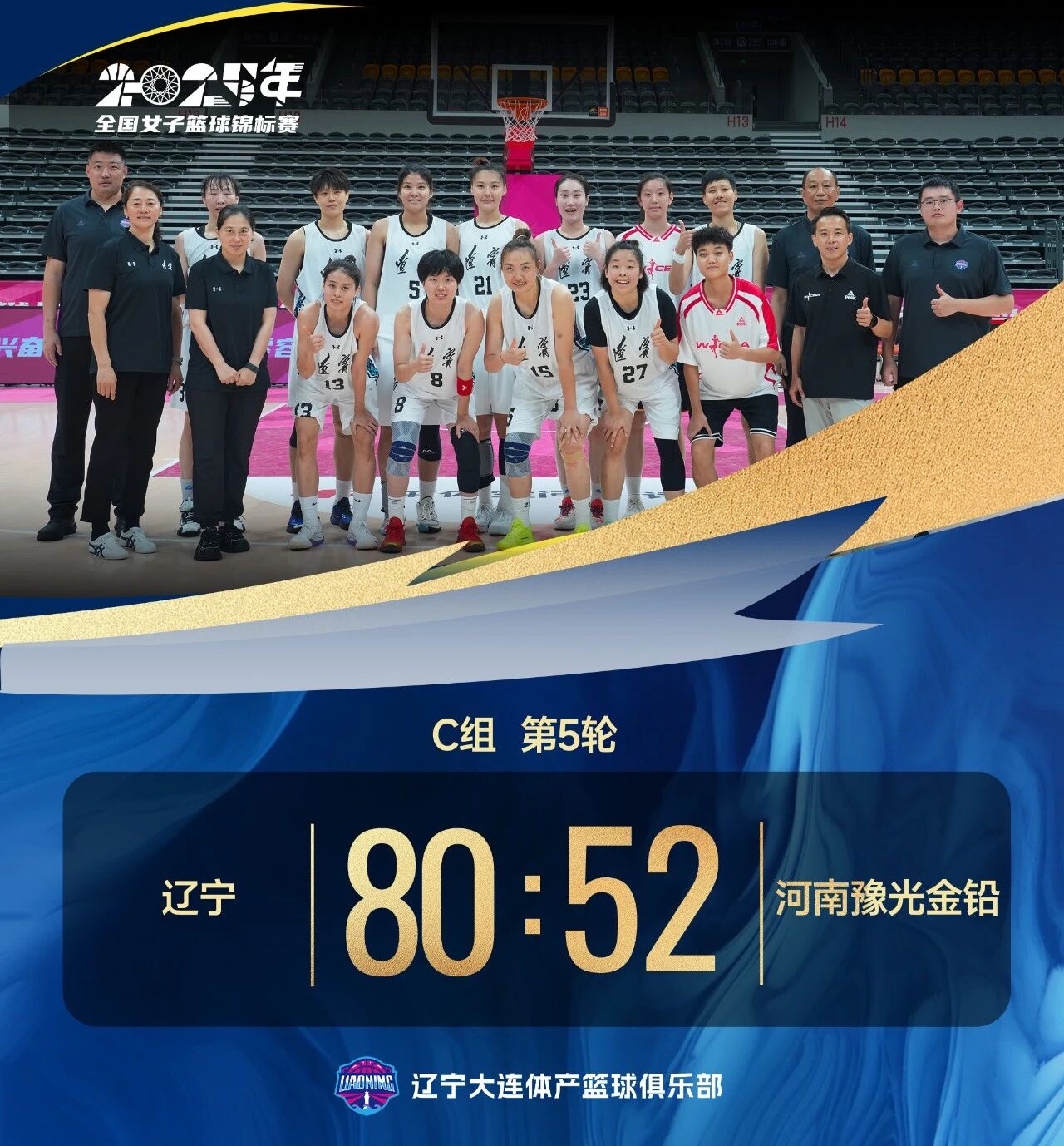 北京時間2025年9月21日19時30分,2025年全國女子籃球錦標(biāo)賽浙江諸暨賽區(qū)第五輪,遼寧隊迎戰(zhàn)河南豫光金鉛女籃。全場比賽,遼寧隊攻防兩端表現(xiàn)穩(wěn)健,從第二節(jié)開始確立領(lǐng)先優(yōu)勢,最終80:52戰(zhàn)勝對手。遼寧隊以四勝一負(fù)的佳績位列小組第二名,成功晉級全國錦標(biāo)賽決賽階段!