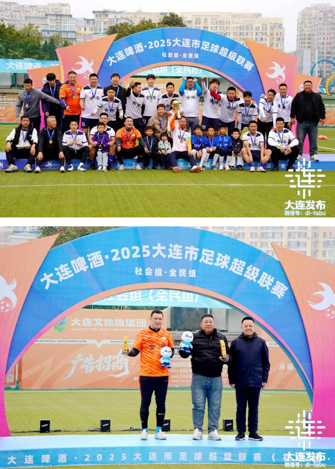 10月25日上午,“連超”社會(huì)組·全民組決賽在奧林匹克足球公園開(kāi)戰(zhàn)。最終,金港足球俱樂(lè)部3:1戰(zhàn)勝大連傳承足球俱樂(lè)部,捧得2025大連市足球超級(jí)聯(lián)賽社會(huì)組·全民組冠軍獎(jiǎng)杯。