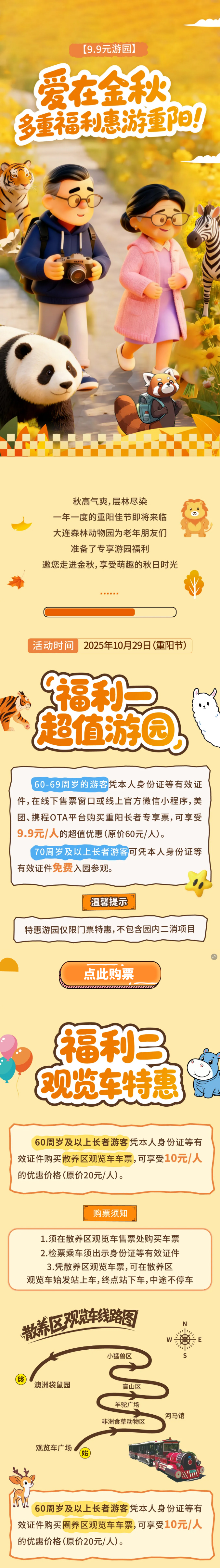 【9.9元游動物園】愛在金秋,多重福利惠游重陽!