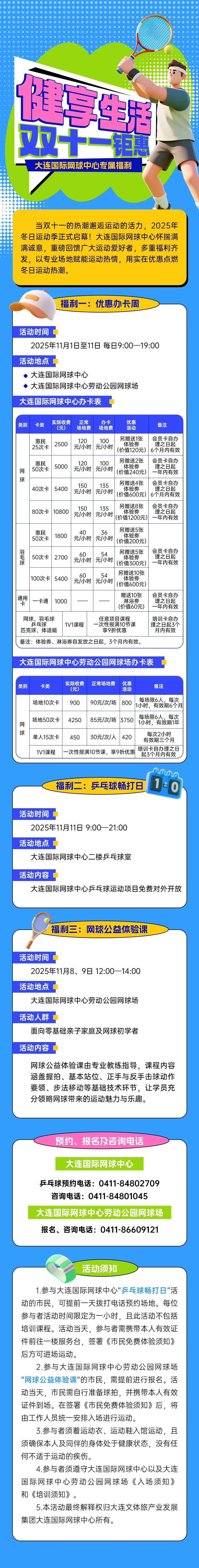 “健享生活,雙十一鉅惠”大連國際網(wǎng)球中心專屬福利 2025-10-28