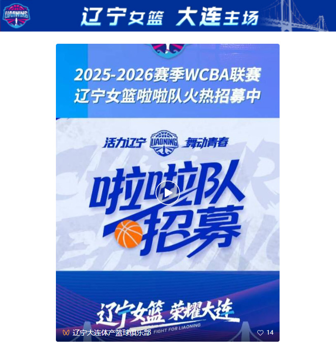 為塑造獨具特色的主場賽事文化,提升遼寧大連體產(chǎn)籃球俱樂部的品牌影響力,現(xiàn)正式組建一支兼具專業(yè)水準(zhǔn)與青春活力的專屬啦啦隊,為球隊助威、為賽場添彩。我們面向大連市高校在校學(xué)生、社會舞蹈團(tuán)體成員及廣大舞蹈愛好者公開招募。新成立的啦啦隊將全程參與遼寧大連體產(chǎn)籃球俱樂部主場比賽,承擔(dān)現(xiàn)場表演、氣氛帶動、球迷互動及球隊形象推廣等工作,以青春風(fēng)采點燃賽場激情,展現(xiàn)當(dāng)代青年的朝氣與魅力。