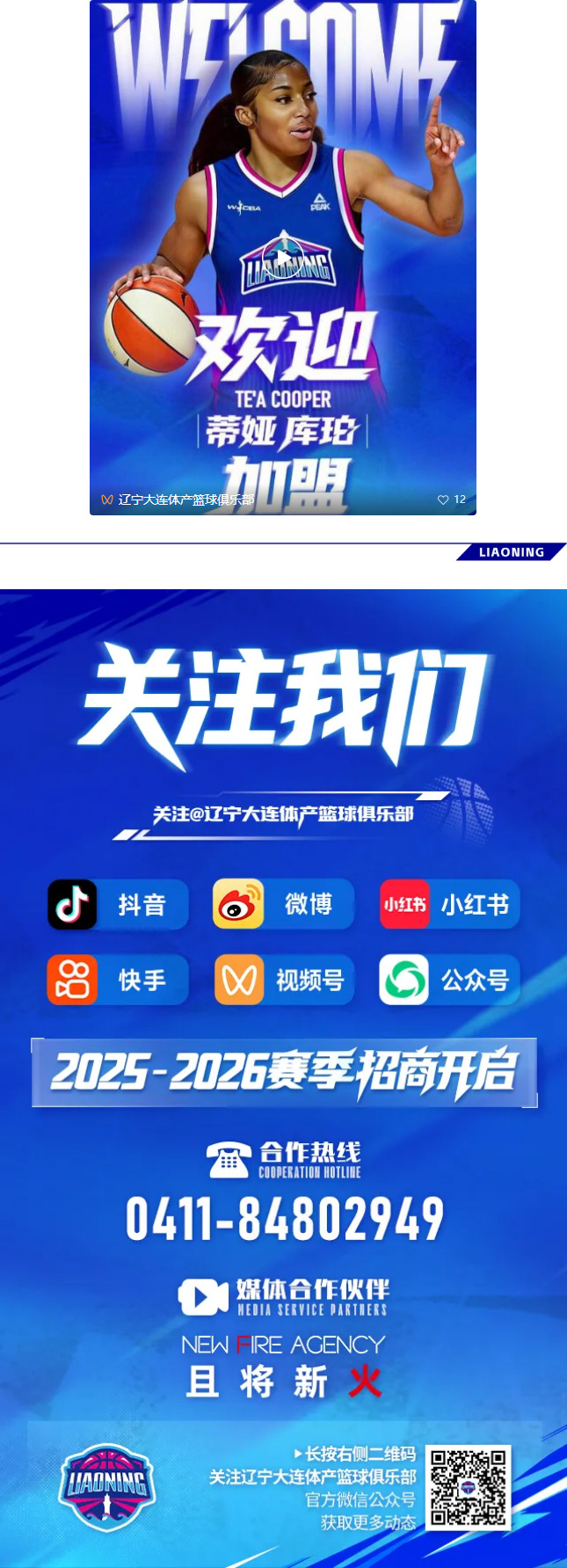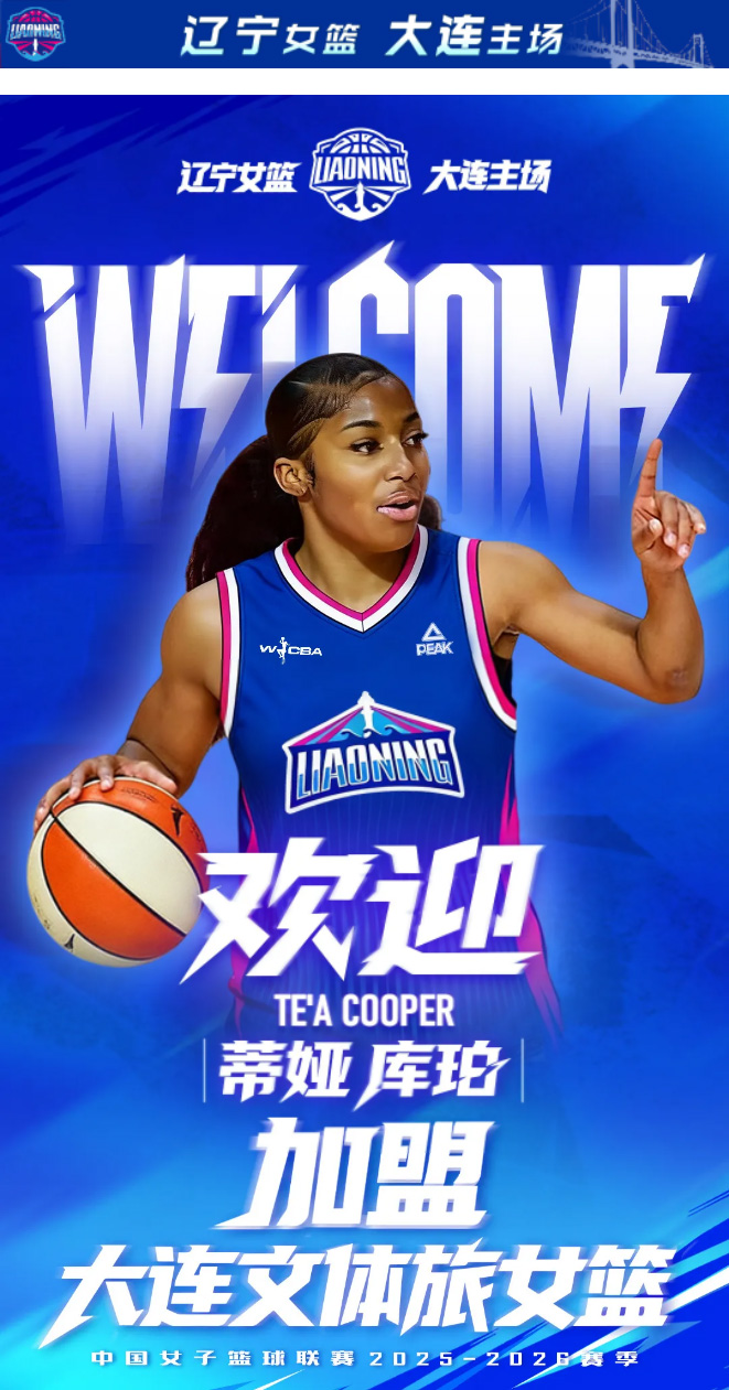 歡迎蒂婭 · 庫珀加入大連文體旅女籃大家庭!期待她在新賽季中充分發(fā)揮其技術(shù)與經(jīng)驗,幫助球隊在WCBA賽場上披荊斬棘,奏響更多勝利凱歌!