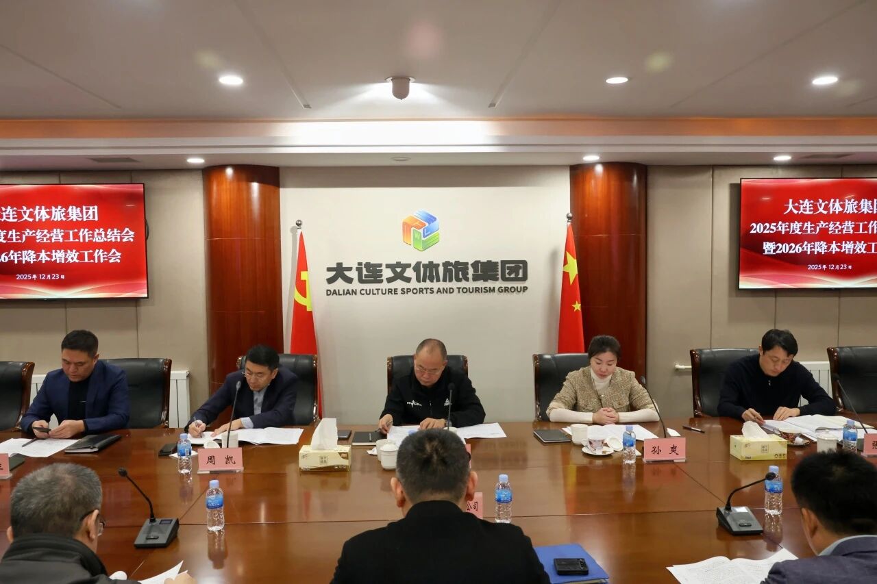 2025年12月23日,大連文體旅集團召開2025年度生產(chǎn)經(jīng)營工作總結(jié)會暨2026年降本增效工作會。會議分階段聽取了各所屬企業(yè)關(guān)于2025年度經(jīng)營工作完成情況、存在問題及2026年降本增效計劃的全方位匯報。集團領(lǐng)導逐一進行深入點評,并就全力沖刺年度目標、科學謀劃未來發(fā)展作出系統(tǒng)部署。集團黨委副書記、總經(jīng)理孫爽主持會議,集團黨委書記、董事長李雪松出席會議并講話。
