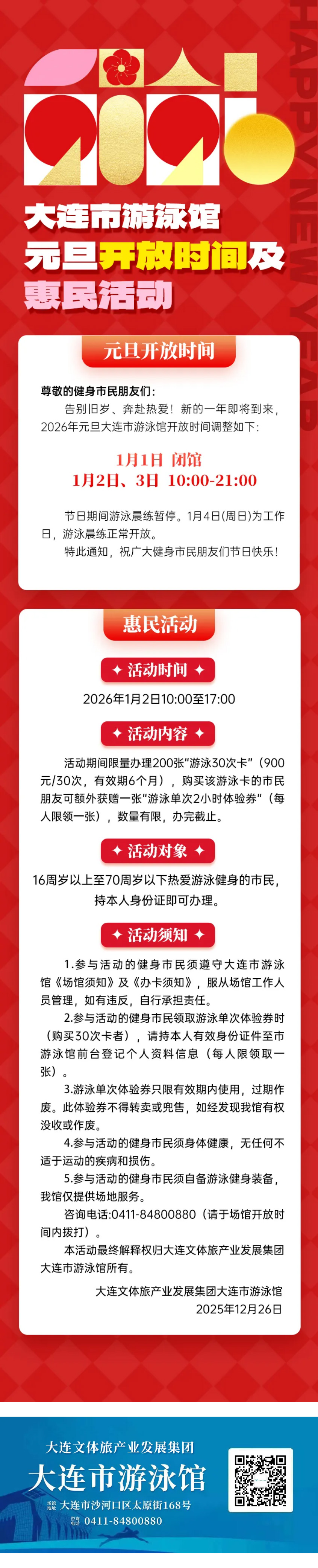 大連市游泳館元旦開放時間及惠民活動