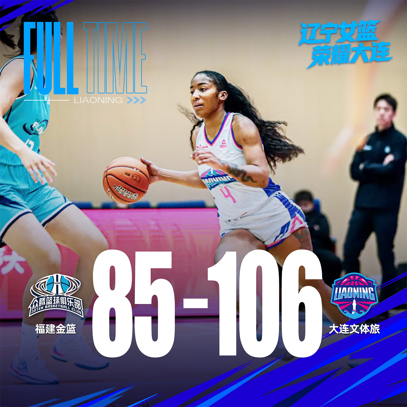 末節(jié)決戰(zhàn),大連文體旅女籃派出輪換陣容,王釗琦、胡玥明等球員延續(xù)良好手感,繼續(xù)為球隊(duì)貢獻(xiàn)得分。全隊(duì)打出了流暢的團(tuán)隊(duì)籃球,最終將勝利穩(wěn)穩(wěn)收入囊中。全場(chǎng)比賽結(jié)束,大連文體旅女籃106:85戰(zhàn)勝福建金籃女籃。