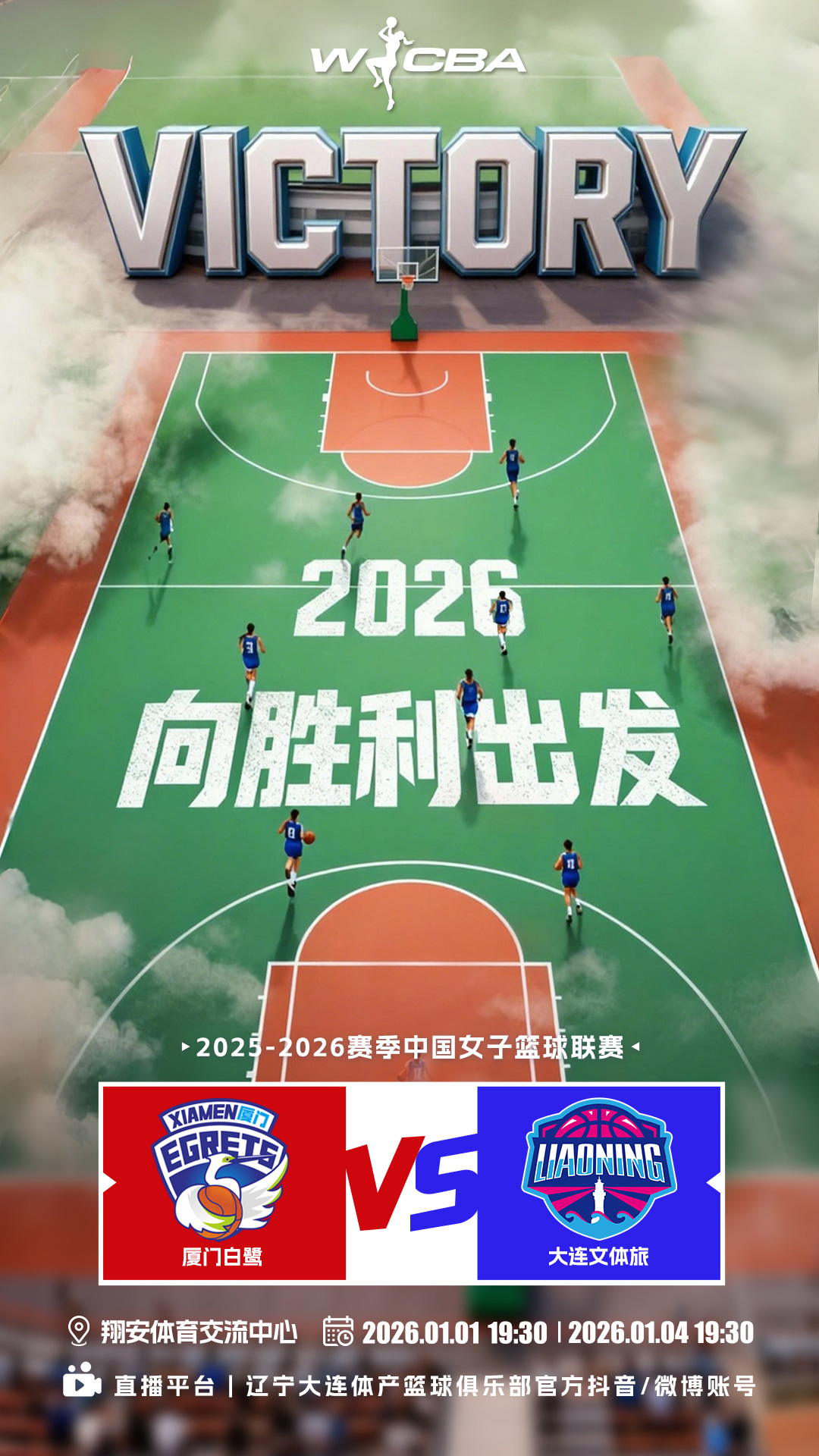 新歲啟程,以戰(zhàn)為序??缒暾魍疚葱?,大連文體旅女籃繼續(xù)閩南客場(chǎng)征程。2026年的篇章,當(dāng)以拼搏落墨,以勝利起筆。此去跨越山海,只為執(zhí)著一念:向前,向勝,向新的征程全力進(jìn)發(fā)!2026年1月1日19:30,官方抖音、微博全程直播,我們