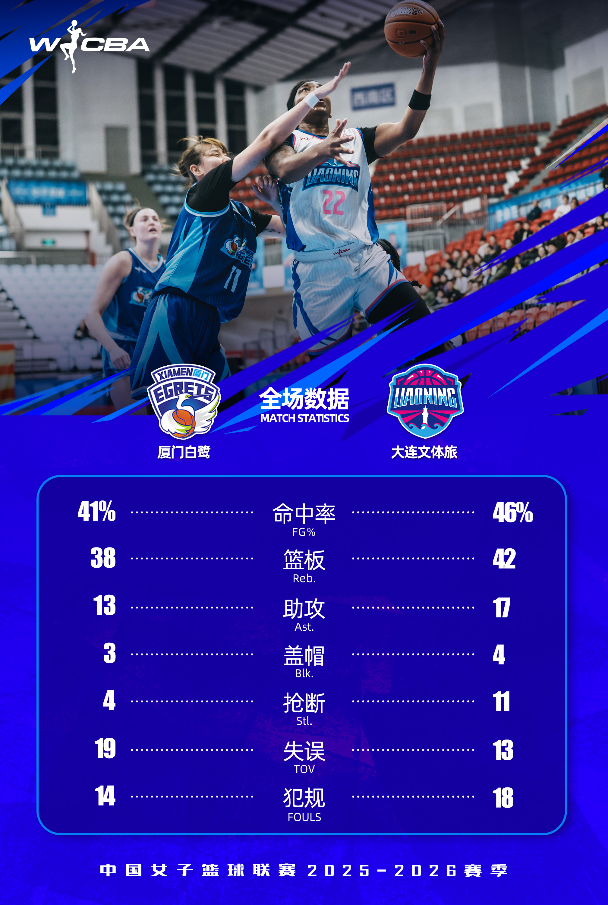 北京時(shí)間2026年1月1日19時(shí)30分,2025-26賽季W(wǎng)CBA常規(guī)賽第十一輪,大連文體旅女籃客場(chǎng)對(duì)陣廈門白鷺女籃。全場(chǎng)比賽,大連文體旅女籃展現(xiàn)出強(qiáng)大的整體實(shí)力與火熱手感,攻防兩端全面壓制對(duì)手,最終大連文體旅女籃91:69戰(zhàn)勝廈門白鷺女籃,用一場(chǎng)酣暢淋漓的勝利為2026年開年獻(xiàn)禮!
