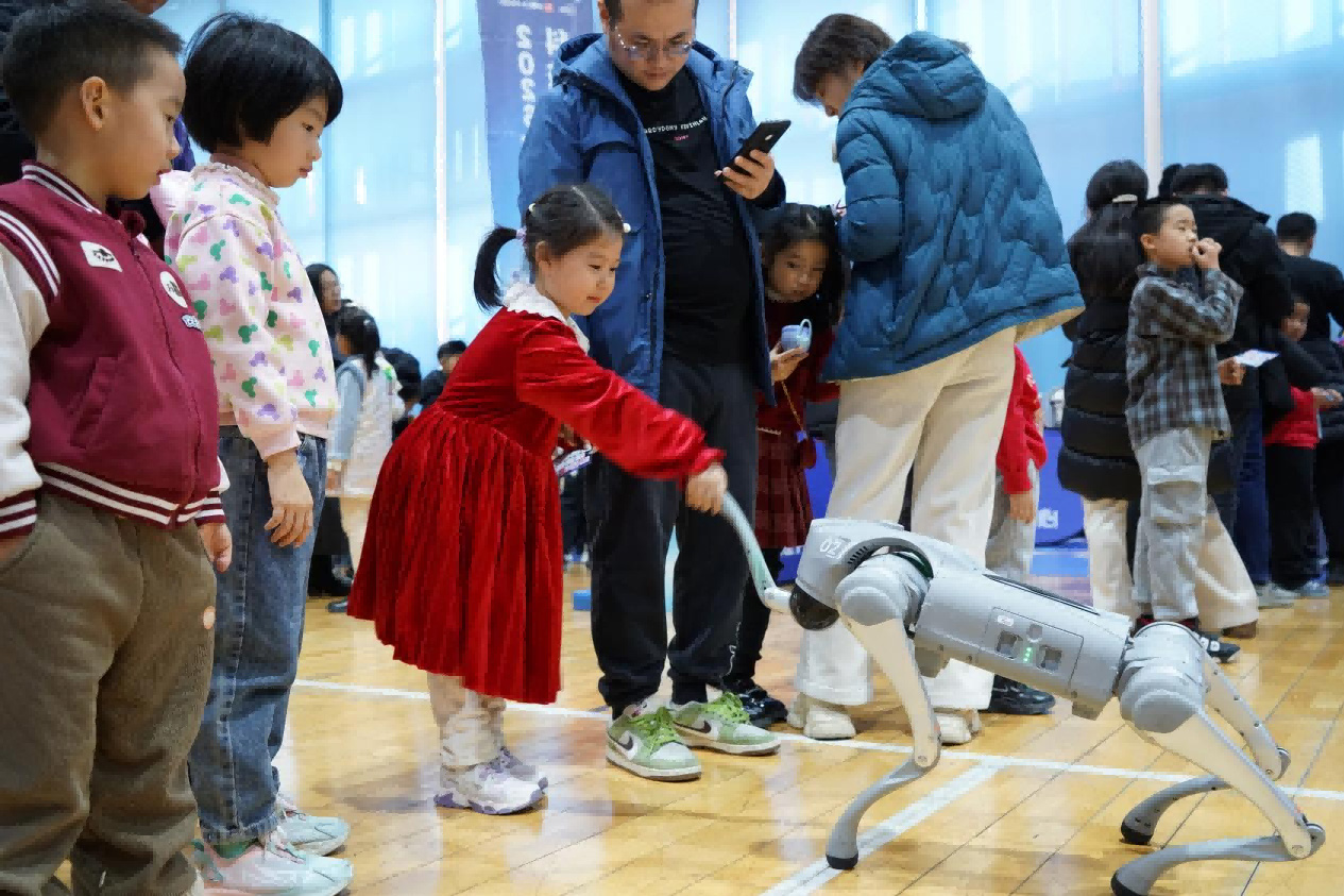 要說現(xiàn)場最受歡迎的環(huán)節(jié),當屬萌寵機器人的互動時刻!神秘嘉賓阿爾法機器狗一亮相,便憑借憨態(tài)可掬的模樣圈粉無數(shù)。它靈活地穿梭在人群中,與孩子們親密互動,時而點頭、時而打滾,可愛的表現(xiàn)引得現(xiàn)場歡聲笑語不斷。這溫馨的一幕,不僅拉近了科技與大眾的距離,更讓大家感受到了科技的溫度。原本冰冷的機械,在人性化的互動中變得溫暖可親,也讓孩子們對科技產(chǎn)生了更濃厚的興趣與好感。