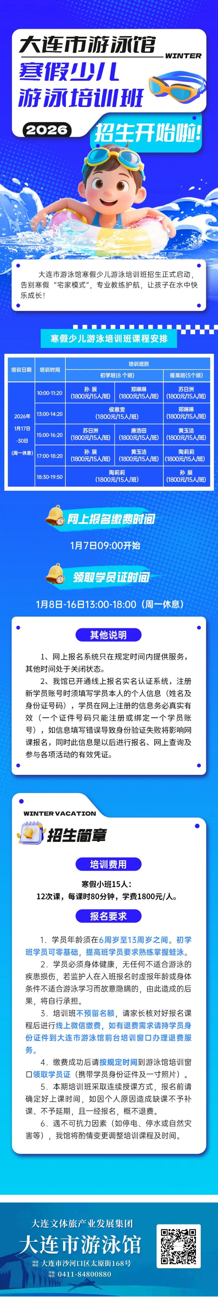 大連市游泳館寒假少兒游泳培訓(xùn)班招生開(kāi)始啦!