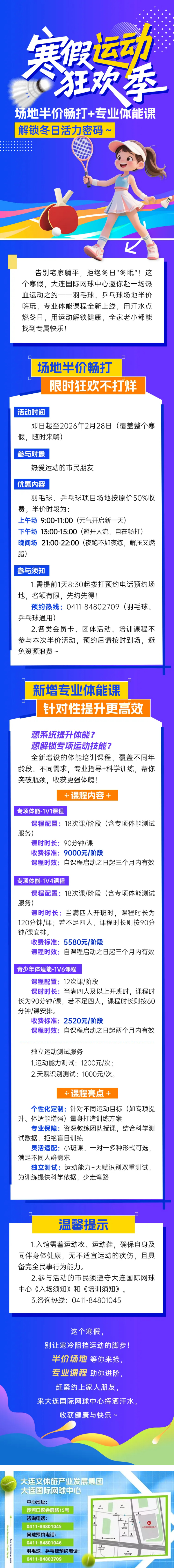 大連國(guó)際網(wǎng)球中心 | 場(chǎng)地半價(jià)暢打+專(zhuān)業(yè)體能課,解鎖寒假冬日活力密碼~