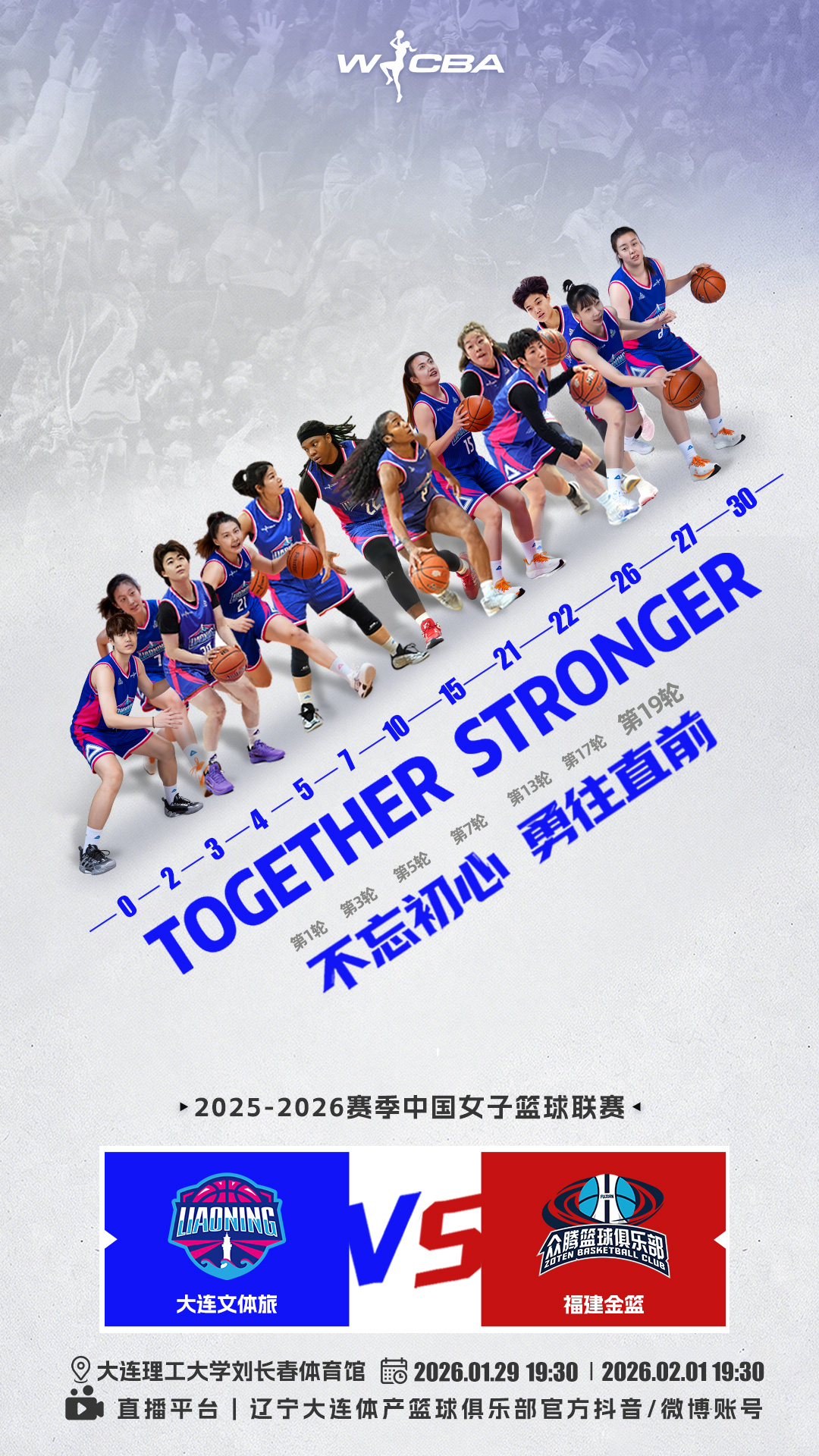 以初心,致終點;以拼搏,寫收官。2025-2026賽季W(wǎng)CBA常規(guī)賽迎來最后兩輪關(guān)鍵戰(zhàn),大連文體旅女籃坐鎮(zhèn)主場,對陣福建金籃女籃。這不僅是一路奮斗的集中綻放,更是向季后賽發(fā)起沖刺的重要一步。無論征程多遠(yuǎn),初心始終照亮前路;無論挑戰(zhàn)多艱,勇往直前是我們不變的姿態(tài)。姑娘們必將全情投入,以堅定的表現(xiàn)為常規(guī)賽畫下句點,并為接下來的征程積蓄全部力量。1月29日19:30,官方抖音、微博賬號全程直播。這一次,讓我們在主場并肩,不忘初心,勇往直前!