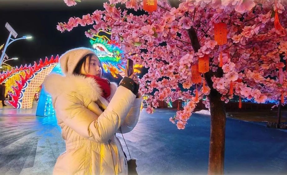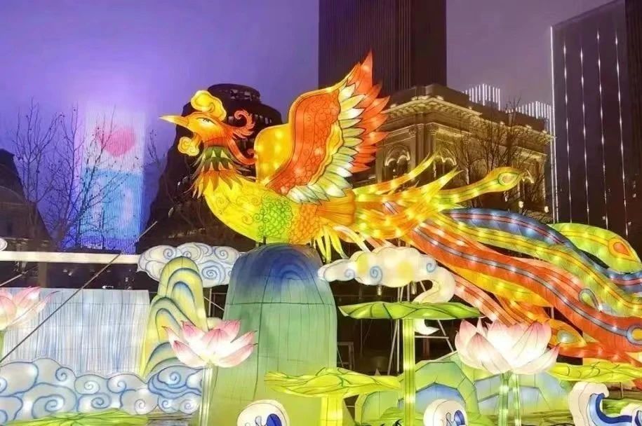 這里有象征著中國傳統(tǒng)文化的國潮國粹燈組、象征著新春祝福的龍鳳呈祥燈組,象征著童趣的木馬樂園燈組等38個造型燈組打造的光影藝術(shù)圈。