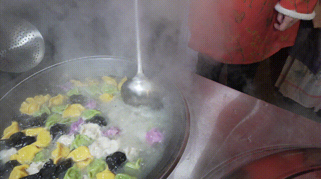 傍晚時分,文旅集團孫爽總經(jīng)理在柴火大鍋前,伴隨著煙火氣親自為現(xiàn)場的游客煮精心準備的五色水餃,象征著“五湖四?!湣笥选?,熱氣騰騰的餃子讓燈會現(xiàn)場年味十足,各地游客吃的津津有味,在新春冬日里盡情感受著大連人獨有的熱情。