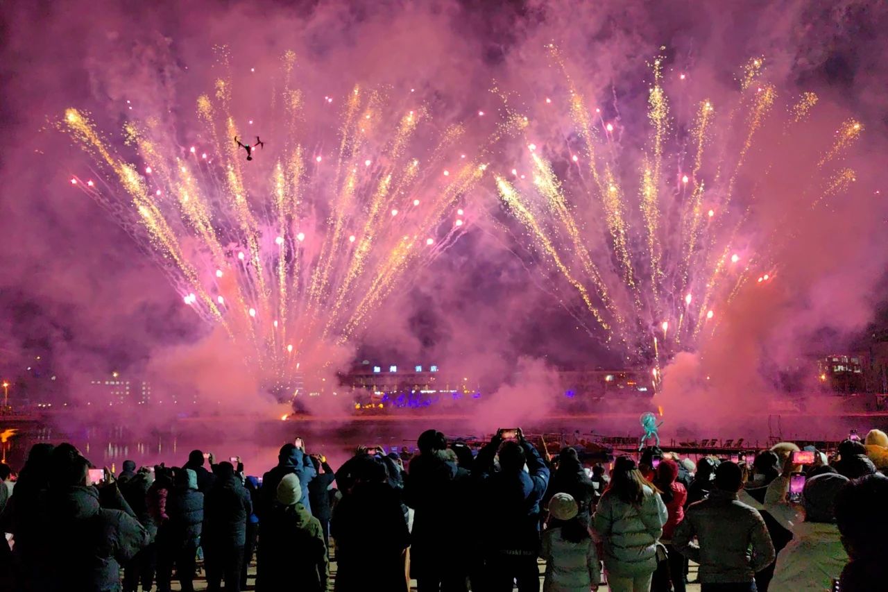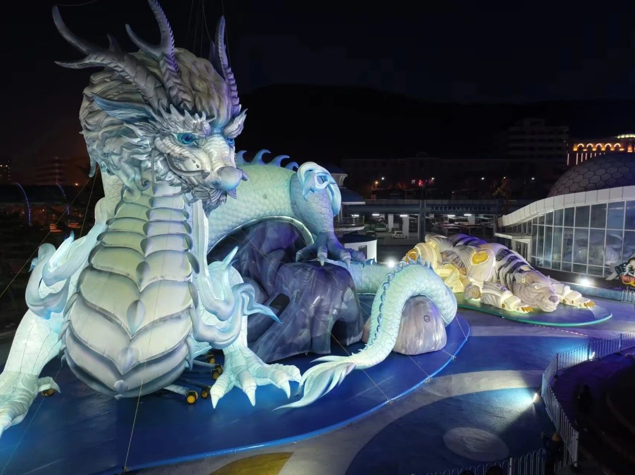 新春佳節(jié)的虎灘公園里,游客們在洋溢著歡樂祥和的節(jié)日氛圍中,看龍年限定演出、賞新春主題花燈、吃頭鍋海膽餃子、祈新年美好祝愿、觀璀璨煙火與無人機秀、見證南北極世紀奇遇、玩轉(zhuǎn)極地冰雪節(jié)?;顒觾?nèi)容豐富多彩,園內(nèi)氣氛其樂“龍龍”,年味“龍龍”。