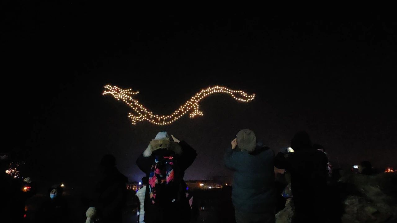 “大連年·東港過”迎春燈會現(xiàn)場,華燈初上,人潮涌動。五彩斑斕的燈組,與夜空中的繁星交相輝映,節(jié)日氛圍濃厚。