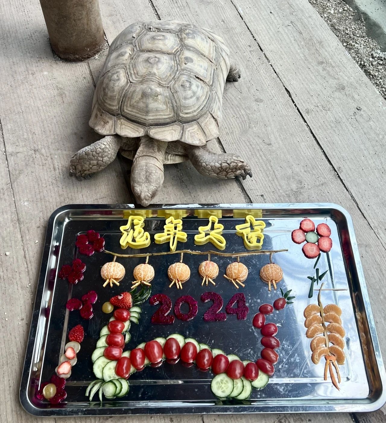 新春佳節(jié),小動物們也有屬于自己的節(jié)日福利,熊貓三寶的豪華版竹制二層蒸屜大餐、小熊貓家族的果蔬套餐、金絲猴家族的各色水果套餐、河馬寶寶的“全瓜宴”等,動物家族都品嘗到了屬于自己造型精美、營養(yǎng)豐富的新春大餐,它們大快朵頤的萌態(tài)不時引來游客們的歡聲笑語!