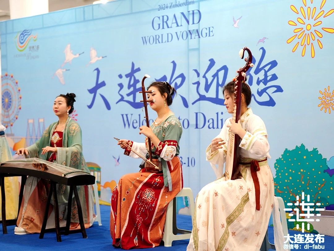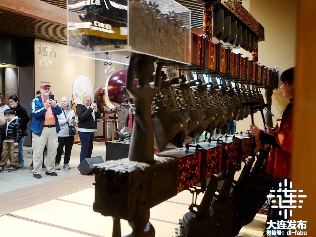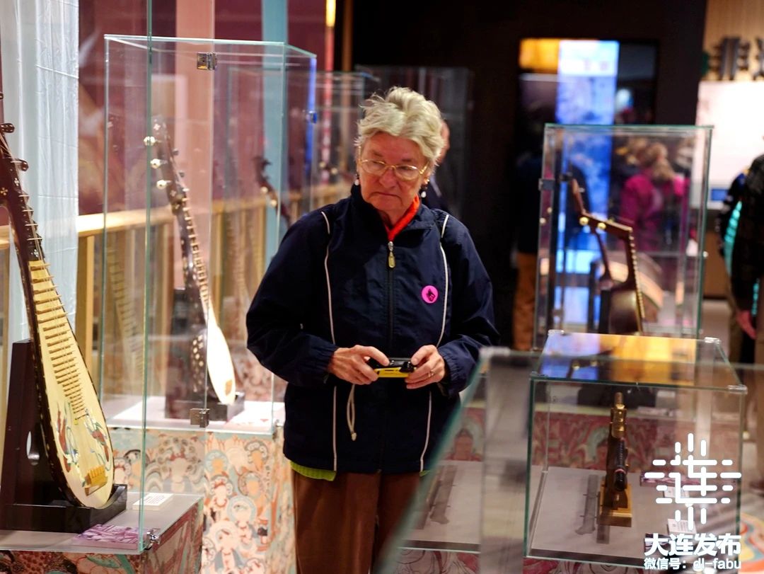 在大連城市音樂館所屬東方音樂文化博物館里,“翠德丹”號(hào)的游客們遇見了一個(gè)文化底蘊(yùn)深厚的大連?,F(xiàn)場(chǎng),仿制敦煌壁畫樂器、京劇臉譜、編鐘等展陳引起游客們的濃厚興趣,大家紛紛拿出手機(jī)拍照,不停地向翻譯詢問這些物品背后的故事。外籍游客丹激動(dòng)地表示,這是他第一次如此近距離感受中國(guó)文化,中華文明是如此璀璨多姿,回去后一定要與家人分享這次難忘的大連之行。