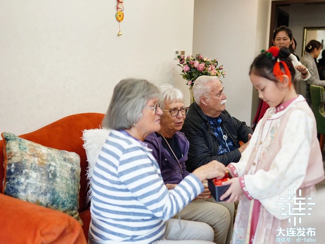 在市民家訪環(huán)節(jié)中,百余位外籍游客走進(jìn)人民路街道東日社區(qū)和港盛社區(qū)的9戶家庭,與大連市民近距離交流。