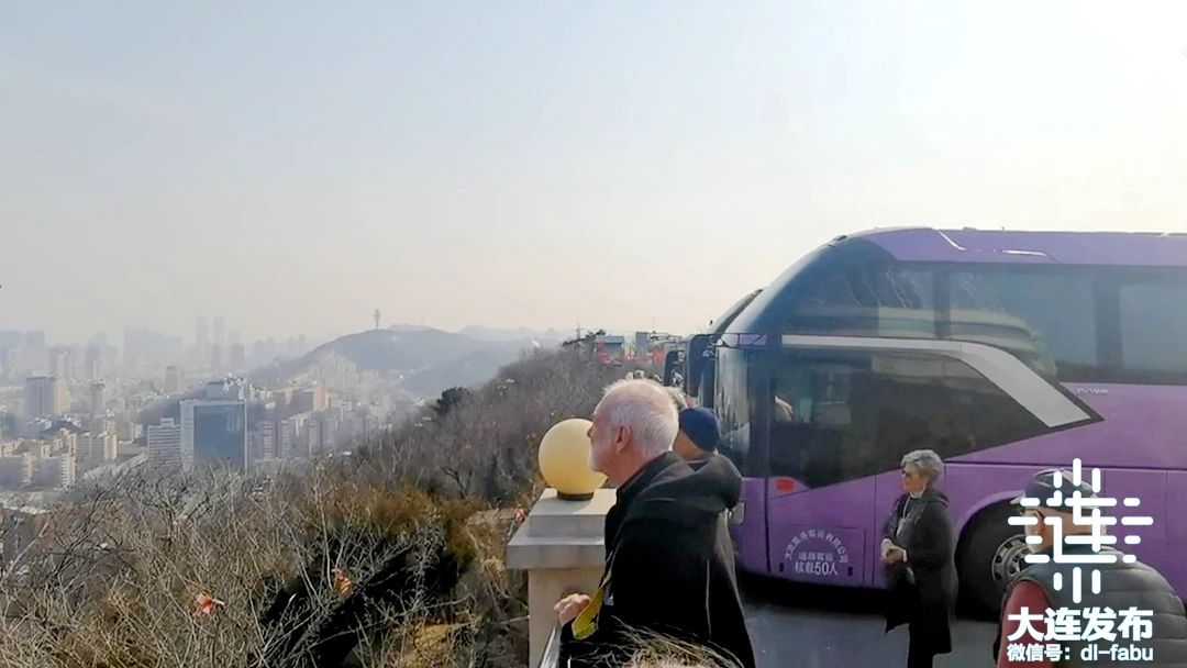 近二百名外籍游客乘坐大巴車到達(dá)電視塔觀光游覽,一下車就和冬末春初時(shí)節(jié)中大連的微風(fēng)與陽光撞個(gè)滿懷,俯瞰城市風(fēng)景,讓游客們遇見最熱情、最浪漫的大連,大家在拍照留念的同時(shí),更是止不住地贊嘆眼前的美景。