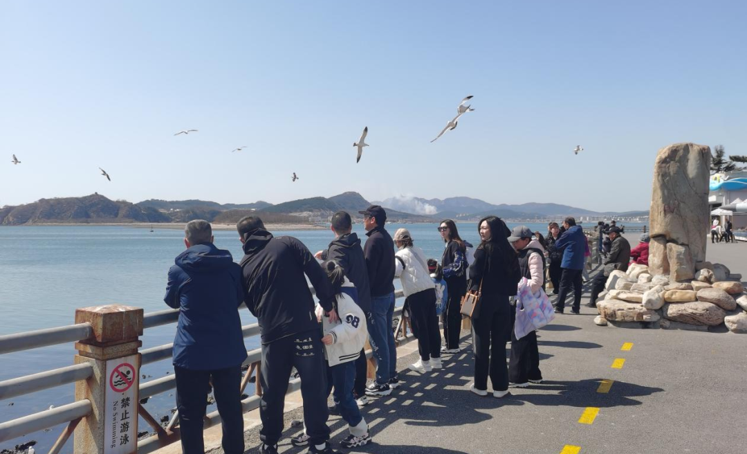 清明假期,東港五街現(xiàn)場人人從從眾眾……自華樂街起至港隆路,市民游客站滿街道,爭相拍攝這條直通大海的公路,目睹商船、客輪從海面駛過的浪漫畫卷。