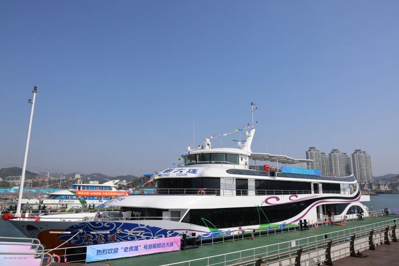 4月29日上午,東北首艘海上大型高端觀光游覽船“老虎灘”號游船接船儀式在大連老虎灘游船碼頭舉行。4月29日上午,東北首艘海上大型高端觀光游覽船“老虎灘”號游船接船儀式在大連老虎灘游船碼頭舉行。