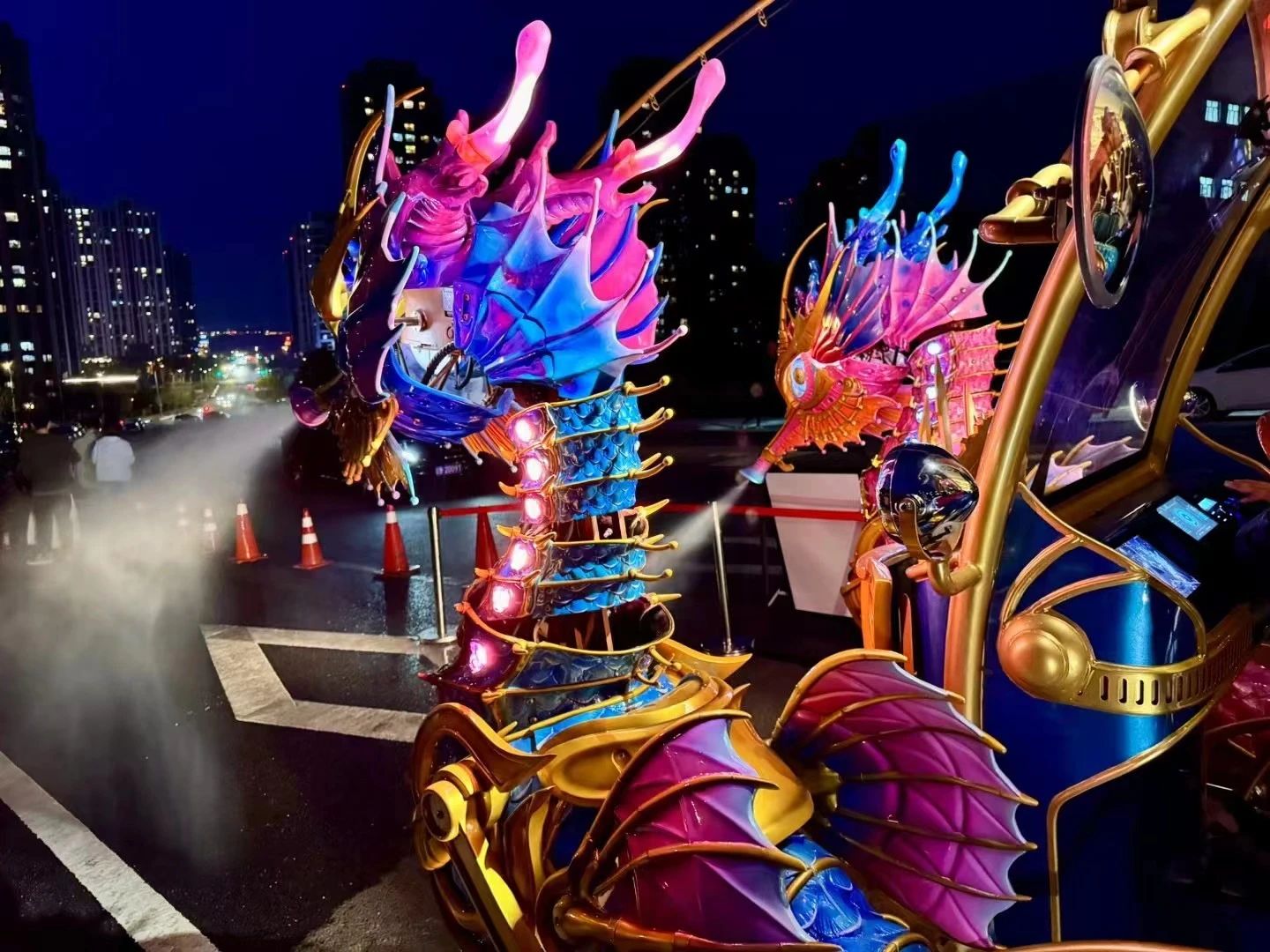 “大連奇幻海洋號”將軍系列機甲神車“五一”期間面向游客開放運營,其強大的科技感、出挑別致的造型、趣味泡泡互動引得游客趨之若鶩,各處售票點位也排起了長龍。
