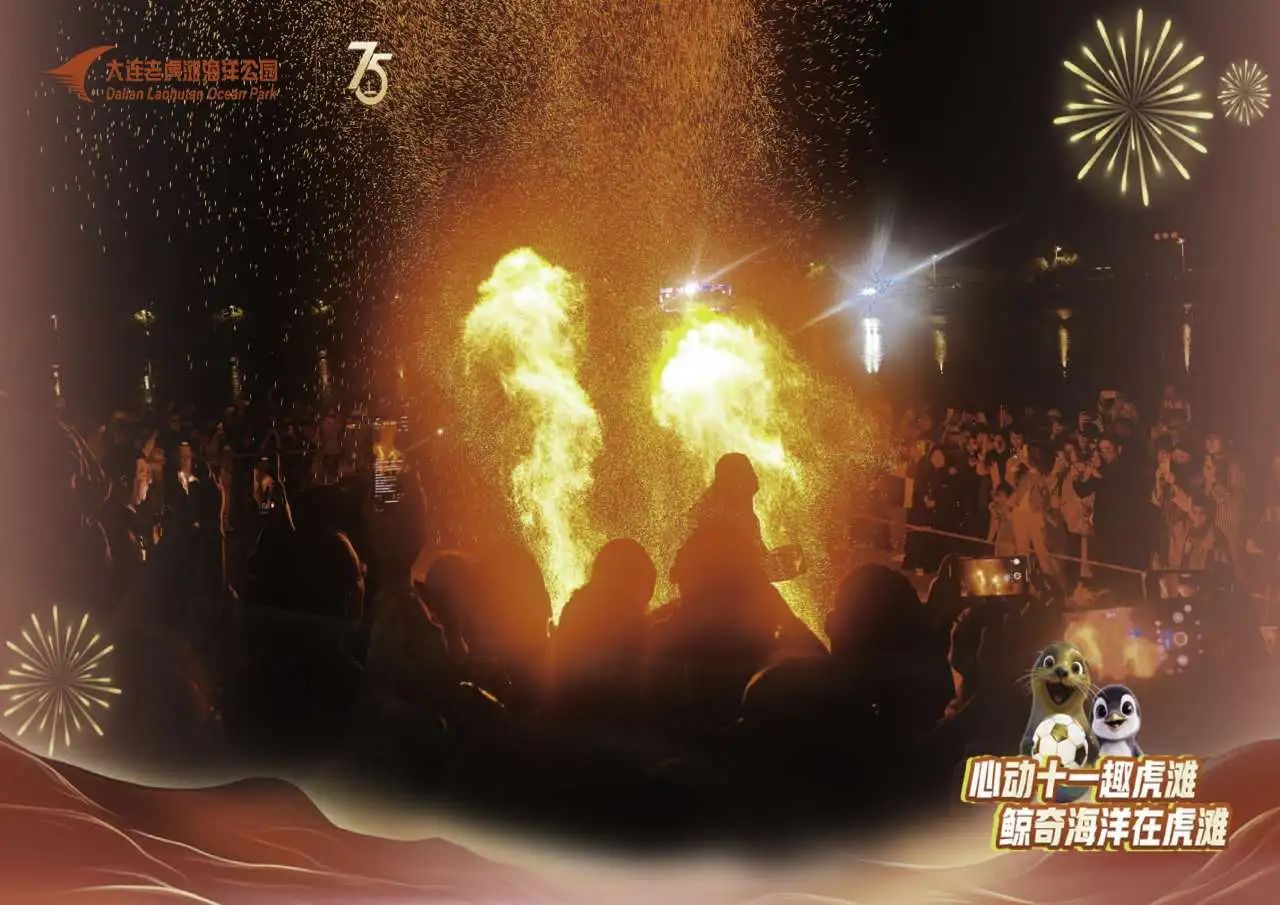 當(dāng)夜幕降臨,老虎灘海洋公園更是別有一番風(fēng)味。國(guó)慶燈會(huì)璀璨開(kāi)啟,20余組主題花燈將園區(qū)裝點(diǎn)得如夢(mèng)似幻,游客們漫步其間,仿佛置身于一個(gè)夢(mèng)幻的海洋世界。場(chǎng)面震撼的火壺火棍表演,氣勢(shì)磅礴,讓人嘆為觀止。當(dāng)星空遇上煙火,盛大的煙花秀點(diǎn)亮整個(gè)虎灘灣的夜空!在光影變換中,游客們相聚一起,共賞璀璨星河,許下對(duì)祖國(guó)的美好祝愿。