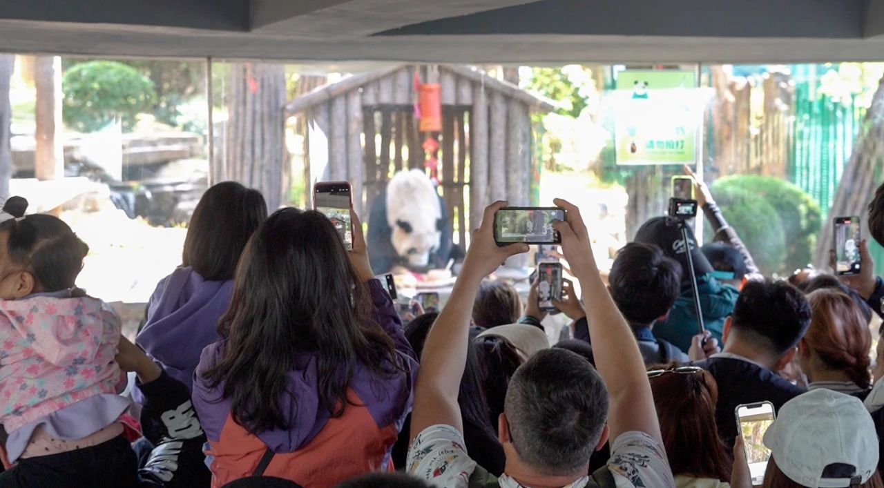 園區(qū)內(nèi)一面面小紅旗在游客手中隨風(fēng)擺動(dòng),歡樂(lè)祥和的國(guó)慶氛圍感瞬間拉滿?!疤鼗萋?lián)萌?FUN玩國(guó)慶”主題活動(dòng)火熱開(kāi)展。紅旗飄飄歡度國(guó)慶,巨型打卡墻送祝?;顒?dòng)區(qū)游客們接踵而至,大家紛紛寫下祝福語(yǔ)為偉大祖國(guó)慶生;“最美ZOO福獻(xiàn)祖國(guó)”抖音話題互動(dòng)吸引了大量游客積極參與,線上播放量達(dá)到47.5萬(wàn);河馬“姐弟”、小動(dòng)物村里慵懶系流量明星“卡皮巴拉”等網(wǎng)紅萌獸家族吸引了眾多游客駐足圍觀,拍照合影。連續(xù)三天的ZOO直播線上帶領(lǐng)游客近距離感受大熊貓三寶、金絲猴、小動(dòng)物村萌寶們的節(jié)日幸福時(shí)光,云端一起歡度國(guó)慶。