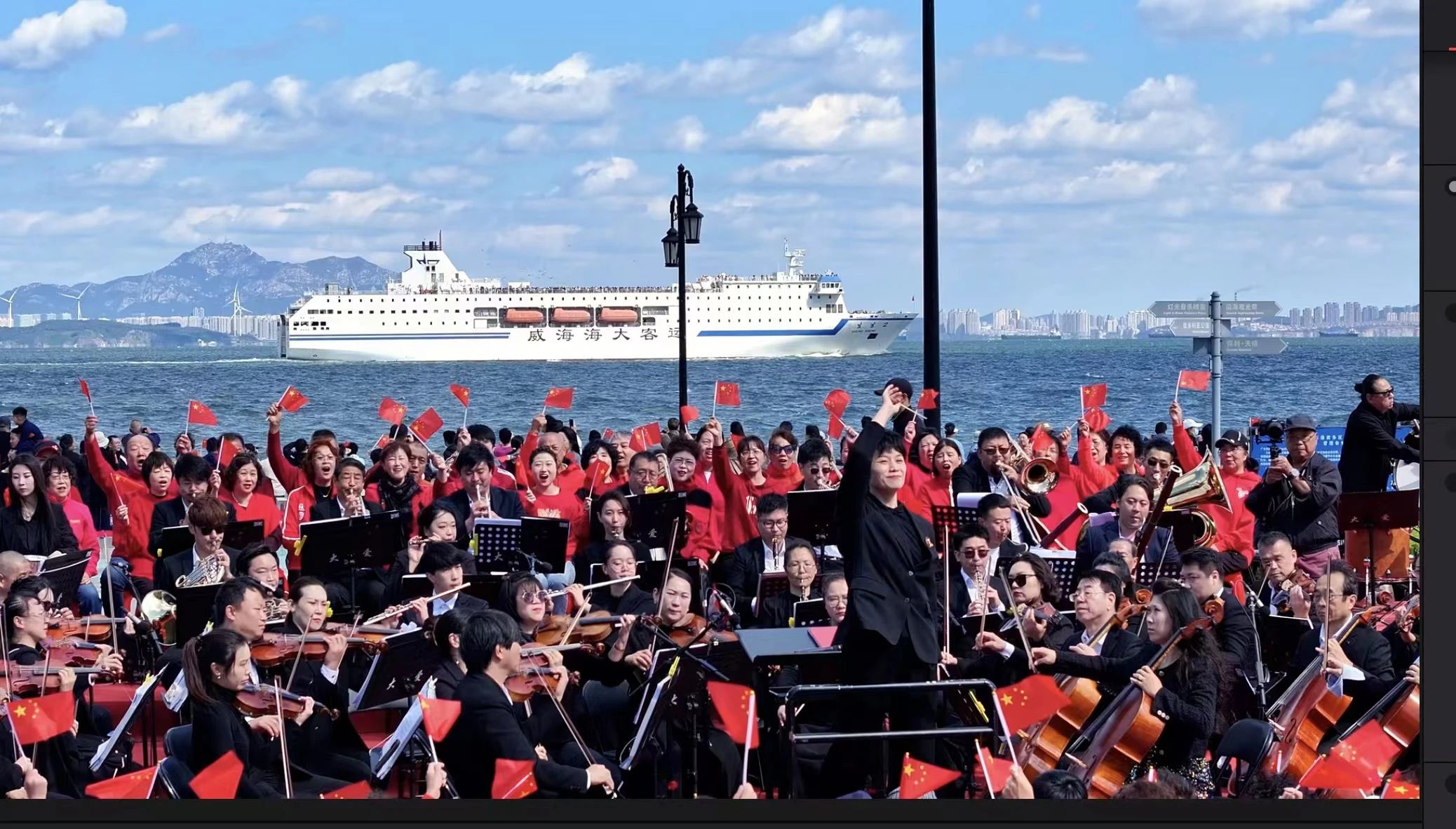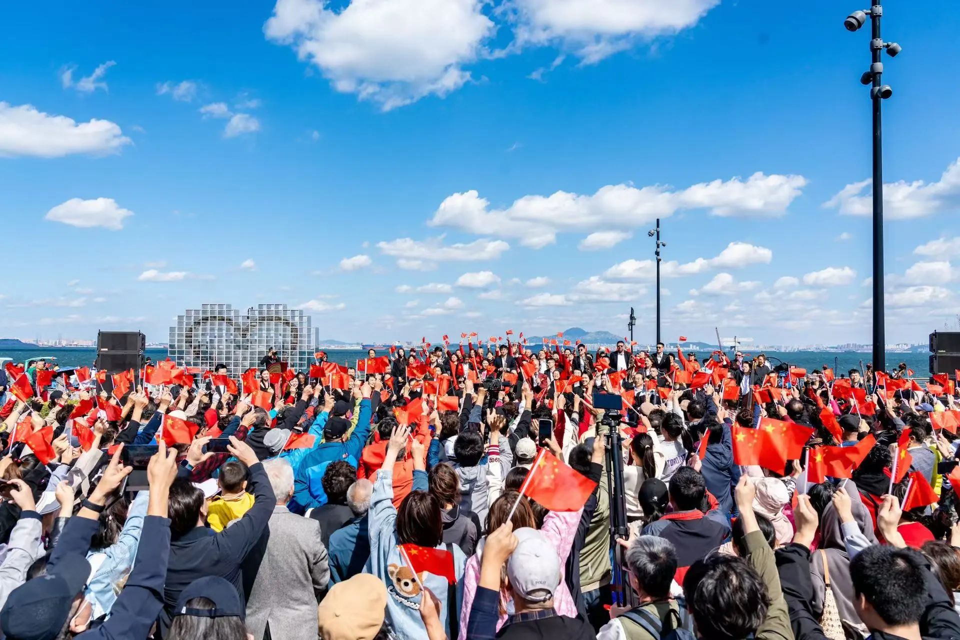 10月1日上午10:30,由大連文旅集團(tuán)主辦,大連東港公司、大連愛(ài)樂(lè)交響樂(lè)團(tuán)承辦的“遇見(jiàn)大連·歌唱祖國(guó)”主題音樂(lè)會(huì)在港東五街愛(ài)墻廣場(chǎng)唱響,為來(lái)自全國(guó)各地的游客朋友獻(xiàn)上了一場(chǎng)集大型交響樂(lè)、壯麗合唱和歡快舞蹈于一體的視聽(tīng)盛宴!歌聲點(diǎn)燃了現(xiàn)場(chǎng),很多游客自發(fā)跟著一起歌唱并隨著歌聲的節(jié)奏揮舞著手中的紅旗,以此表達(dá)對(duì)祖國(guó)的美好祝福!