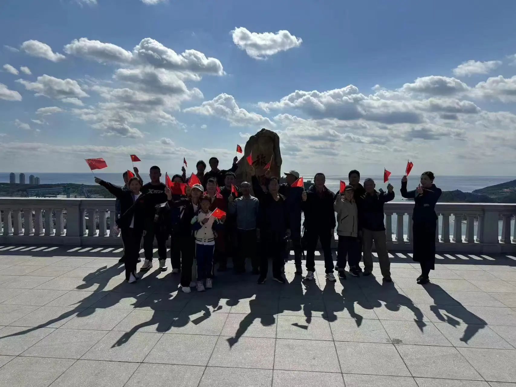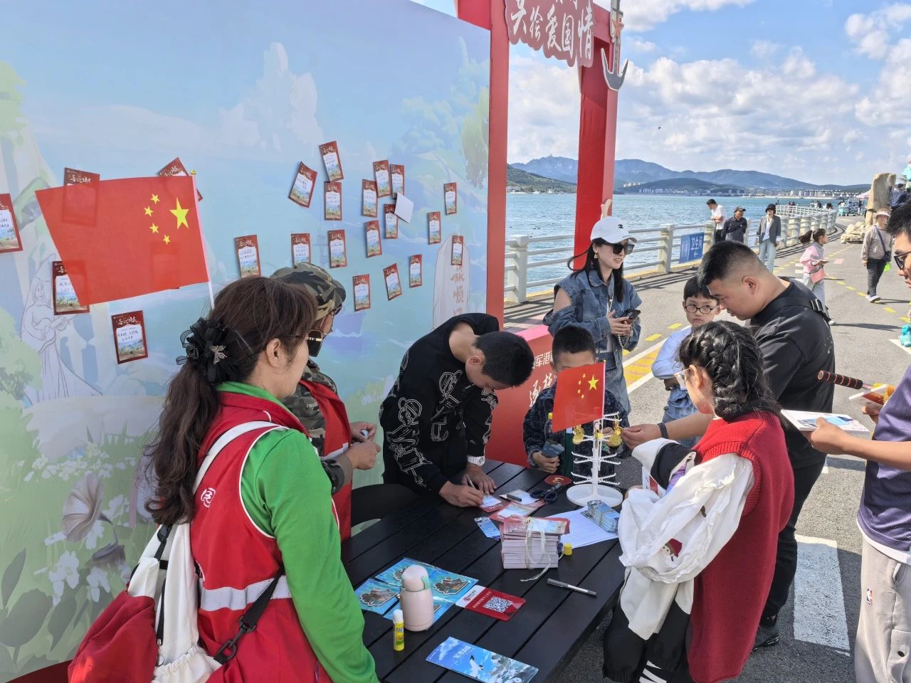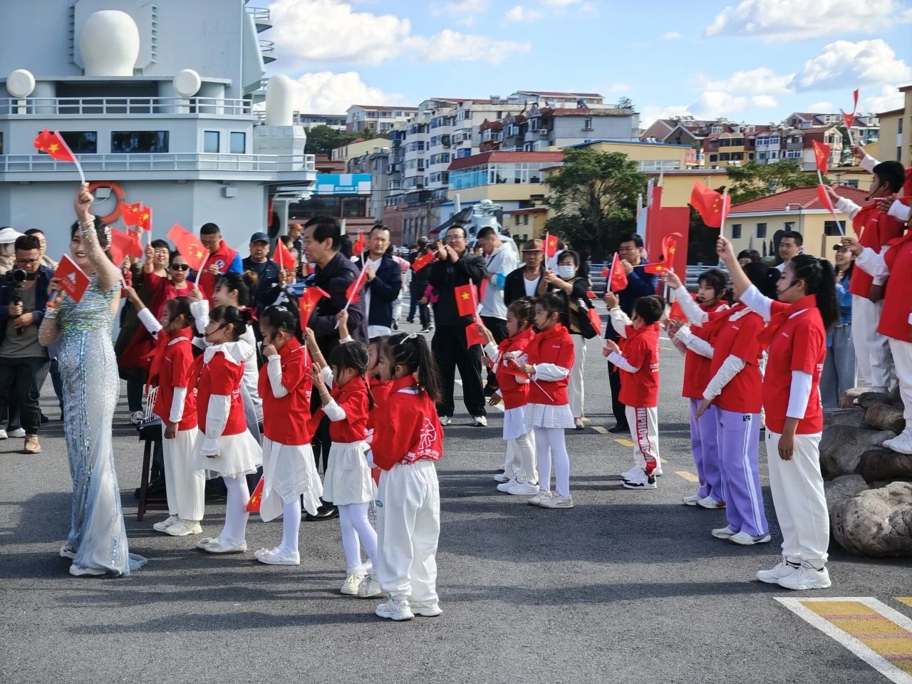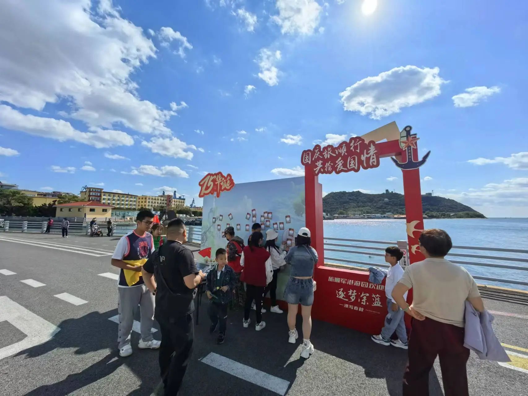 當(dāng)《軍港之夜》這一熟悉的旋律在旅順軍港上空響起,吸引了景區(qū)眾多游客駐足停留欣賞,《愛(ài)我中華》的古箏和手風(fēng)琴演奏為快閃活動(dòng)點(diǎn)燃了激情;軍港游園景區(qū)內(nèi)的艦島上來(lái)自旅順海軍某部的戰(zhàn)士們展示了海軍旗語(yǔ)的獨(dú)特魅力,他們用旗語(yǔ)揮舞出:祝福祖國(guó)生日快樂(lè),表達(dá)了海軍將士們保家衛(wèi)國(guó)的堅(jiān)定信念和海軍精神;隨著悠揚(yáng)的《我的祖國(guó)》音樂(lè)聲響起,一群手舉國(guó)旗的小游客在老師的帶領(lǐng)下齊聲歌唱,游客們被這份濃厚的愛(ài)國(guó)氛圍所感染,紛紛從四面八方匯聚而來(lái)駐足歌唱,在旅順軍港游園景區(qū)一起唱響《我和我的祖國(guó)》,共同為祖國(guó)獻(xiàn)上誠(chéng)摯的祝福。