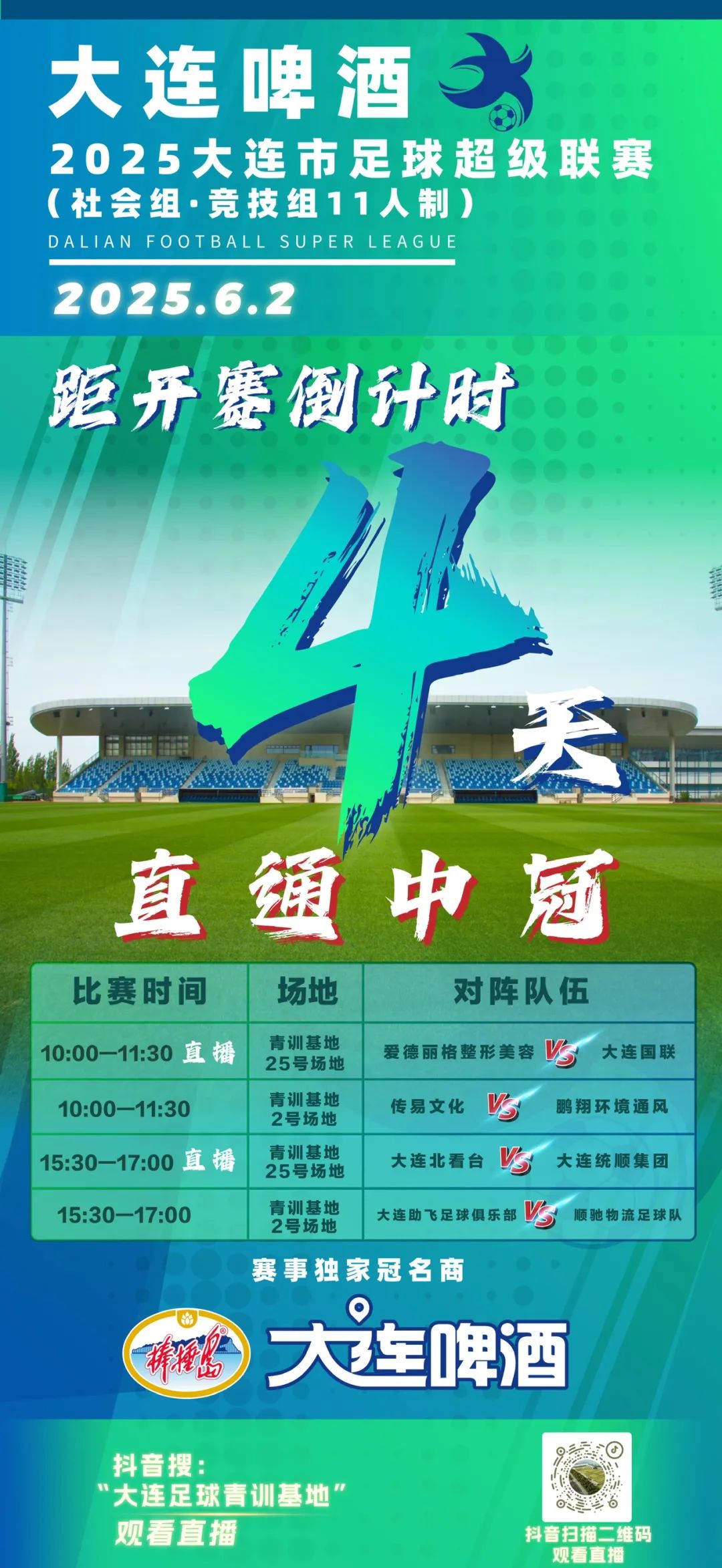 大連啤酒·2025大連市足球超級聯(lián)賽(社會組·競技組11人制)距開賽倒計時4天