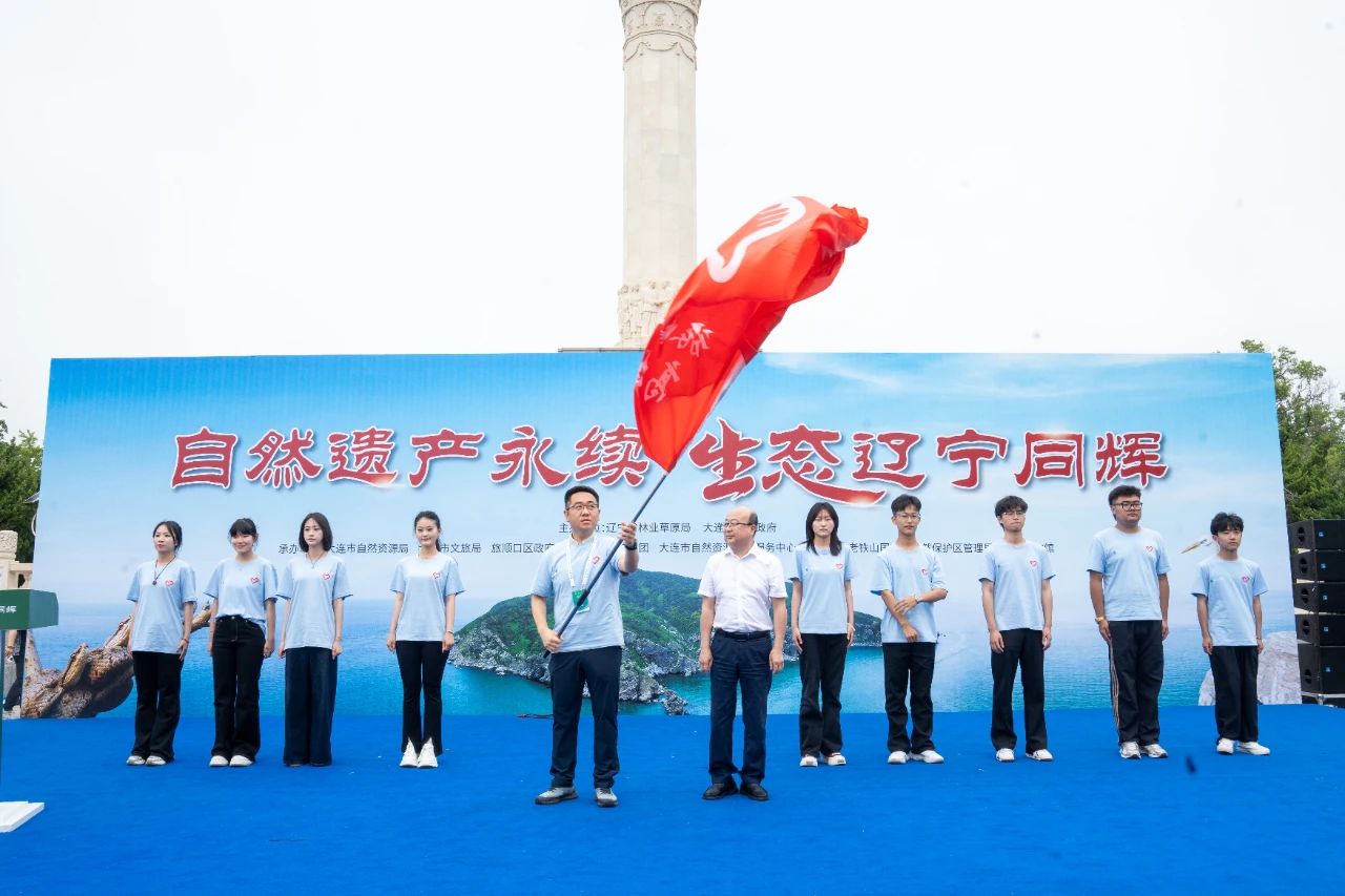 活動(dòng)現(xiàn)場(chǎng)為共青團(tuán)旅順口區(qū)委員會(huì)、遼寧對(duì)外經(jīng)貿(mào)學(xué)院“守護(hù)世遺”志愿者團(tuán)隊(duì)授旗,象征著將守護(hù)自然遺產(chǎn)的接力棒傳遞給更多的年輕人。